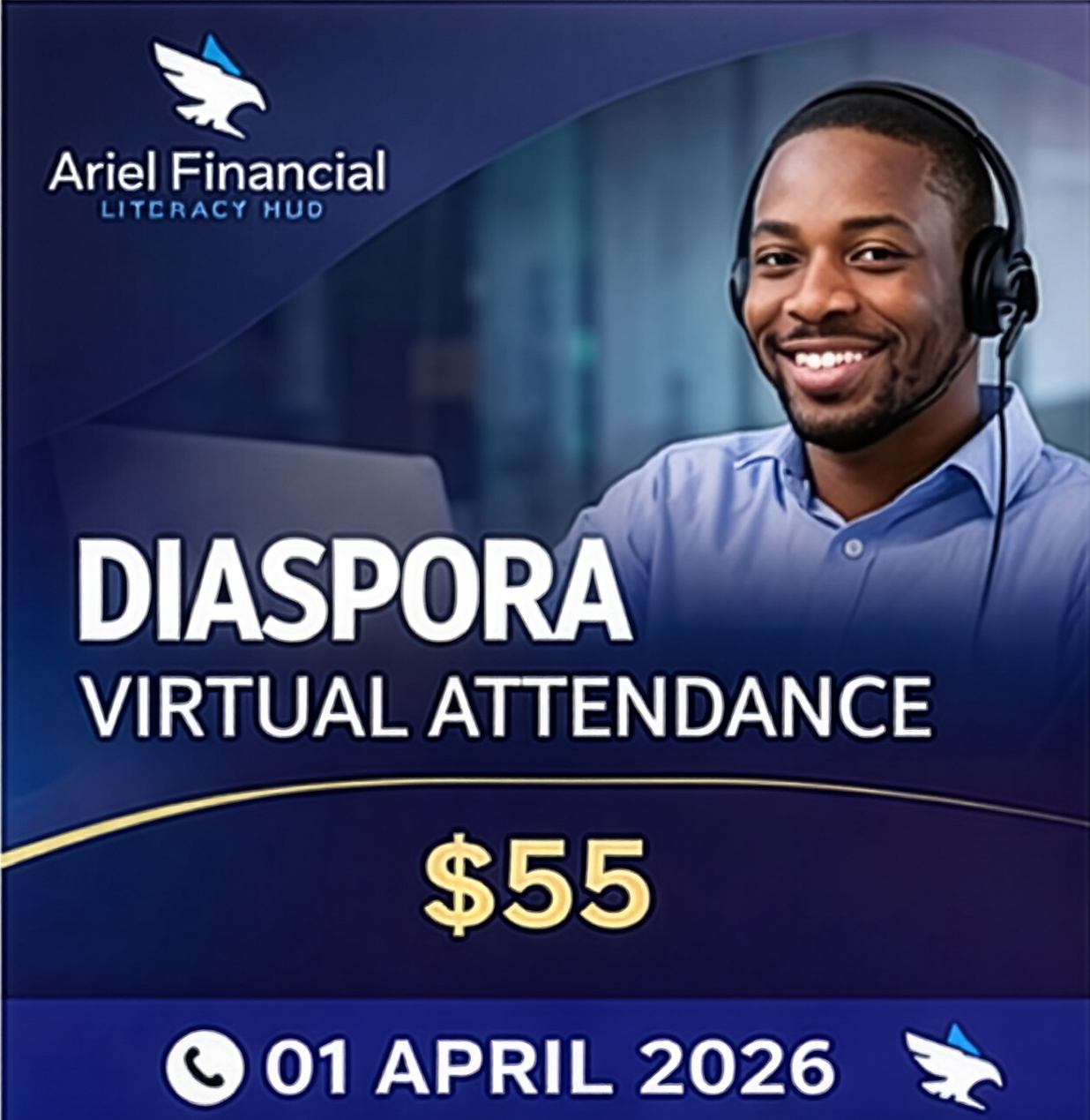 The Diaspora Virtual Attendance Ticket allows participants outside Zimbabwe to join the Ariel Financial Literacy & Business Summit – Africa remotely.